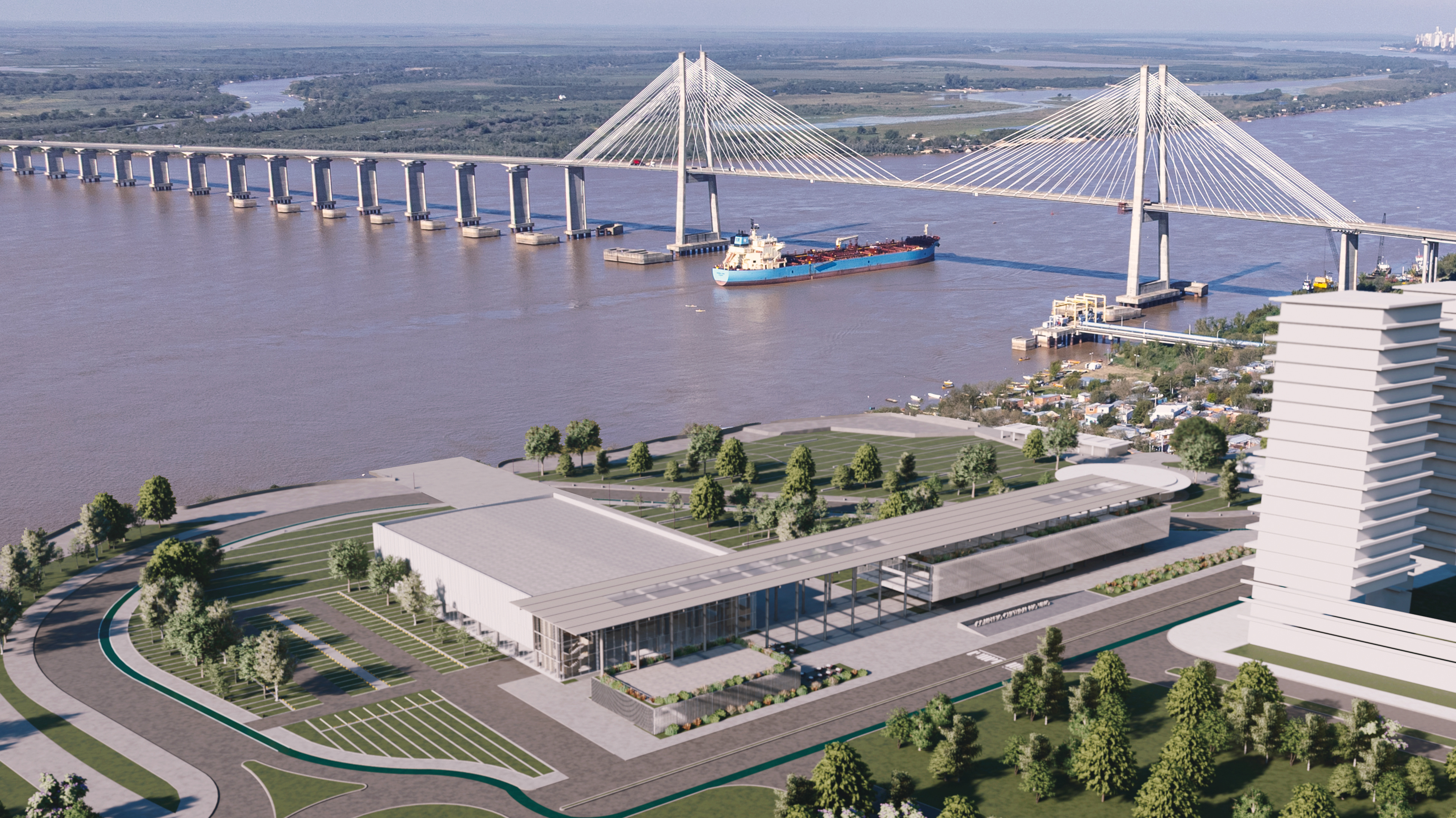 "Borde Ribereño del Parque de la Cabecera", Rosario, Santa Fe. 2025. Equipo: Arq. Pablo Anzilutti, Arq. Roberto Fernández, Arq. Joaquin Verde, Arq. Ramiro Mairani, Arq. Valentin Monge, Manuel Baumgartner.